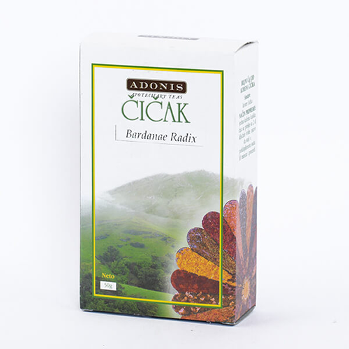 Adonis čaj od korena čička deluje kao dermatik, digestiv i diuretik. Upotrebljava se protiv upale i čira želuca, poboljšava probavu, pomaže protiv reume, skrofuloze, kožnog ekcema, lišaja, osipa, gnojnih rana i skorbuta.