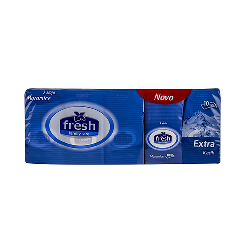 Fresh papirne maramice extra classic 10×10 kom napravljene su od čiste celuloze, od tri sloja kvalitetnog papira, uz korišćenje najmodernijih tehnologija za sve one koji vole klasične maramice bez mirisa. Na najbolji način brinu o higijeni i udobnosti Vas i Vaših najmilijih.