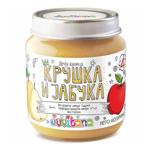 Juvitana Kašica od kruške i jabuke je kvalitetan voćni obrok i koristi se bez prethodne pripreme. Dobar je izvor vitamina, minerala i dijetnih vlakana, a namenjena je deci starijoj od 4 meseca.