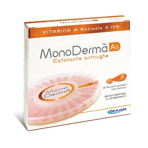 Monoderma A, C i E su čisti vitamini namenjeni za topikalnu primenu, obezbeđujući koži efikasan, bezbedan, a ujedno i veoma prijatan kozmetički efekat. Vitamini su u najčistijoj formi u optimalnoj koncentraciji, garantujući odličnu podnošljivost čak i za najosetljivije tipove kože. MONODERMA A15 Vitamin A – Eksfolijacija, protiv bora.