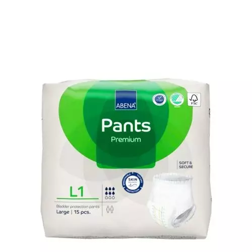 Diskretne ABENA L1 pelene-gaćice su napravljene od prozračnog i super mekog materijala koji omogućava maksimalnu udobnost i zaštitu. Elastične trake u predelu pojasa nude sigurno i udobno pristajanje obliku tela. Imaju Top-Dry sistem za optimalan komfor i zaštitu kože i poseduju sistem koji minimalizuje neprijatne mirise. Indikator vlažnosti sa stepenastom skalom može pomoći korisniku da izabere proizvod sa optimalnim nivoom apsorpcije za njegove potrebe. ABENA Pants L1 gaćice se mogu nositi kao standardni donji veš za umerenu do tešku inkontinenciju.