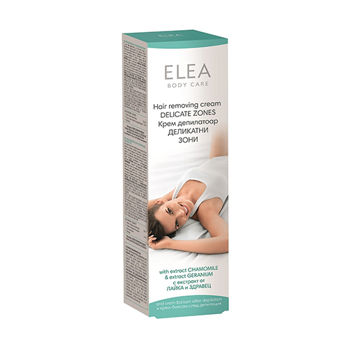 ELEA Hair Removing Cream Delicate Zone krema za depilaciju delikatne zone, namenjena osetljivoj koži, bezbolno uklanja dlačice, pogodna za pazuh i bikini zonu. Formula obogaćena sastojcima Uree, ekstraktom kamilice i geranijuma čini da koža ostane glatka i meka i sprečava urastanje dlačica. Krem balzam posle depilacije sa mirisom kivija i limuna smiruje osetljivu kožu i usporava ponovni rast dlake. Pakovanje sadrži: