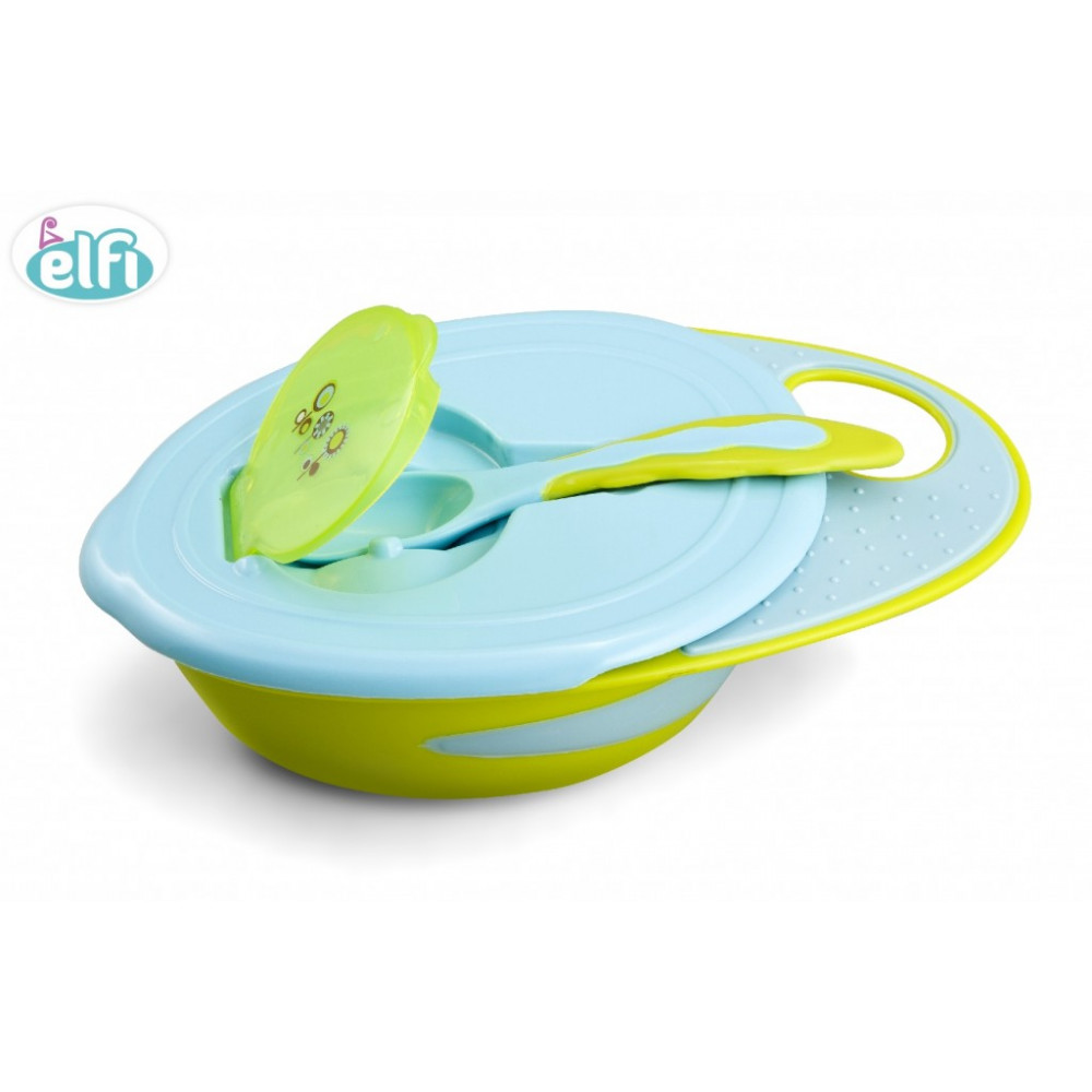 Elfi Činija sa kašikom pripada grupi vrhunskih proizvoda za hranjenje beba i male dece, jer ispunjava potrebne uslove propisane zakonom, potrebama beba i roditelja. Napravljena od sigurne plastike bez bisfenola, dizajnirana da količinski zadovolji prve bebine potrebe za obrocima čvrste hrane, Elfi Činiju sa kašikom se odlikuju i sledeće osobine: dovoljne zapremine za obroke beba, mekana drška kašike, prijatna za držanje, poklopac koji čuva svežinu i higijenu hrane, deo u poklopcu koji omogućava da kašika uvek bude čista i na dohvat ruke, široki obod činije sa praktičnim delom za držanje, pogodna za čuvanje hrane u frižideru i za transport; laka i praktična; prelepe boje i mini ilustracije, primerene bebama i maloj deci; može se prati u mašini za sudove (preporuka: na gornjoj polici). Može se koristiti za zagrevanje hrane u mikrotalasnoj.