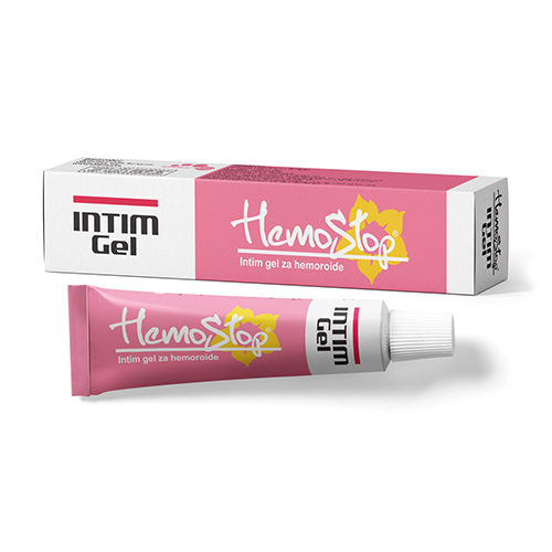 Hemostop Intim gel je namenjen tretmanu unutrašnjih i spoljašnjih hemoroida, kao i tretmanu analnih fisura. Deluje protivupalno, adstringentno (smanjuje krvarenje) i epitelizirajuće (pospešuje regeneraciju sluzokože). Aktivni principi ekstrakta kestena poboljšavaju cirkulaciju i elastičnost krvnih sudova i sprečavaju njihovo pucanje. Etarsko ulje pitome nane i tinktura vrbe deluju antiseptično i anestetički ublažavajući tegobe i bol i pružaju prijatan osećaj hlađenja. Bioadhezivna gel podloga ima epitelizirajući efekat, omogućava postepeno i kontinuirano oslobađanje delujućih sastojaka, čime se postiže duže delovanje preparata na mestu primene.