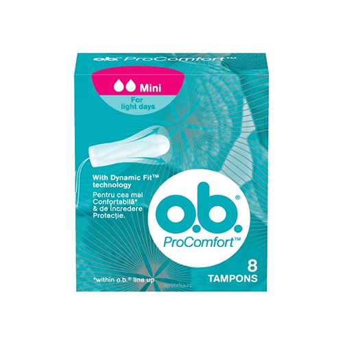 O.B. Procomfort sa jedinstvenim mekim silktouch omotačem nežno klizi i lakše se postavlja i uklanja, pružajući optimalnu udobnost. Dynamicfit tehnologija 3D proširenja omogućava da se ono nakon postavljanja prilagodi vašem telu, a zahvaljujući jedinstvenim isprepletenim kanalićima koji sakupljaju tečnost i efikasno je preusmeravaju naviše čime se pruža pouzdana zaštita. Namenjeni su svim devojkama i ženama, kojima je važno lako postavljanje i uklanjanje, dizajnirani su sa kupastim vrhom, mali su, tanki i svilenkasto mekani na dodir. Ovo olakšava upotrebu na samom početku korišćenja tampona. O.B. Procomfort Mini se preporučuje početnicama ili za lakša i srednje jaka menstrualna krvarenja.