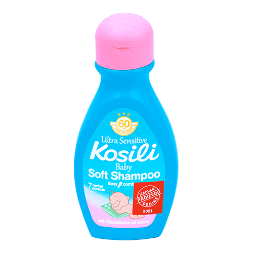 Kosili Ultra Sensitive šampon za bebe – plavi idealno čisti i štiti kosu i osetljivu kožu glave Vaše bebe. Ovaj šampon za bebe sadrži pažljivo odabrane sastojke koji imaju blagotvorno dejstvo na kožu i kosu Vaše bebe. Sadrži biljne ekstrakte kamilice, komorača, matičnjaka, hmelja, hajdučke trave i imele koji imaju umirujuće dejstvo na osetljivu kožu glave i ojačavaju koren kose. Takođe sadrži alantoin i ureu. Šampon pruža mekoću i svilenkast sjaj bebinoj kosi, smanjuje iritacije i hidrira osetljivu kožu bebe, kao i njenu kosu. Kosili bebi šampon nežno čisti kosu dajući joj mekoću i svileni sjaj. Ima neutralnu pH vrednost. Idealan je za svakodnevnu upotrebu i kod odraslih.