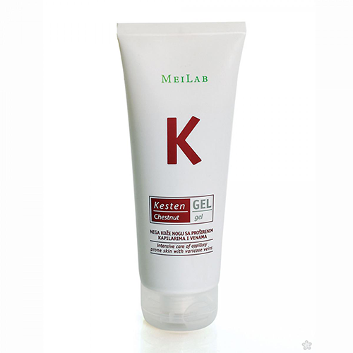 Kesten gel je lagani osvežavajući gel koji sadrži biološki aktivne supstance iz biljnih ekstrakata ( kesten, centela ), eteričnih ulja ( ruzmarin, lavanda ), aromatičnu supstancu mentol i alantoin. Namenjen je nezi kože nogu sa proširenim kapilarima i venama.