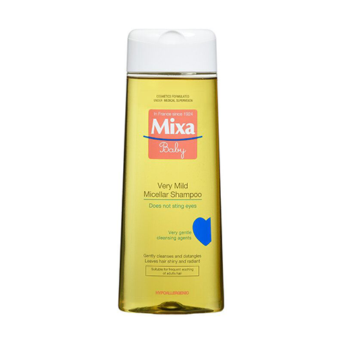 Mixa šampon za bebe. Blag micelarni šampon za bebe ima poseban sastav koji sadrži micelarne čestice pomoću kojih lako otklanja nečistoće sa kose bez trljanja. Bogata pena se lako ispira. Kosa se ne mrsi, mekana je i blista od zdravlja, mirišući nežno i čisto.